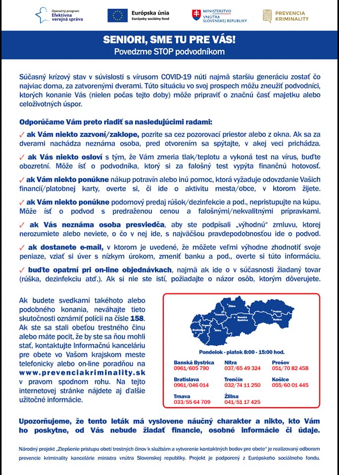 Seniori pozor pred podvodníkmi – Vigyázzunk idős szeretteinkre