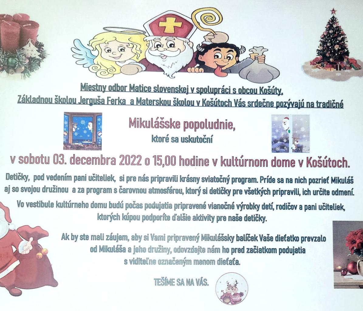 o 15:00 hod. v kultúrnom dome v Košútoch Miestny odbor Matice slovenskej v spolupráci s obcou Košúty, ZŠ Jerguša Ferka a MŠ v Košútoch