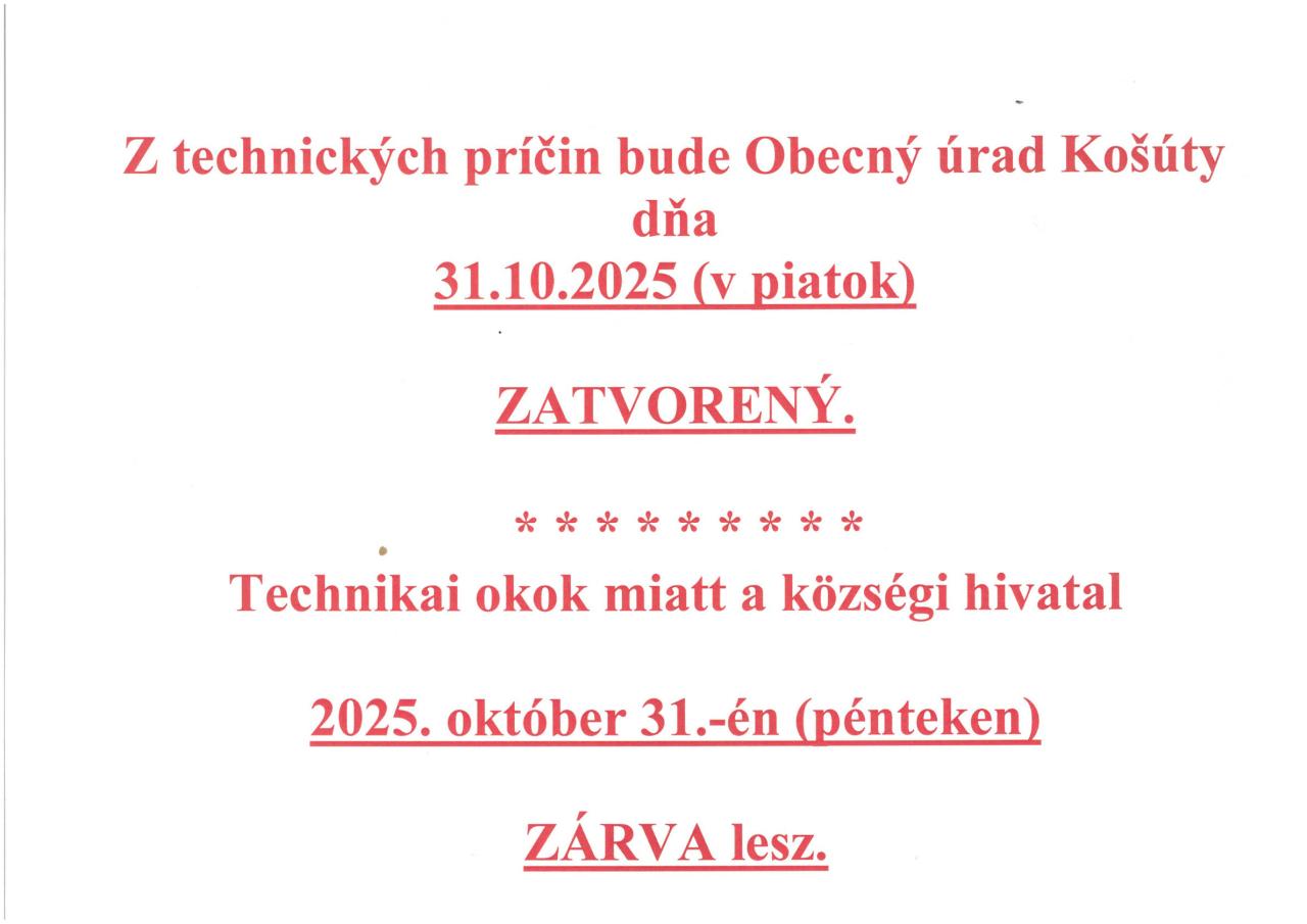 dňa 31.10.2025 (v piatok) zatvorený