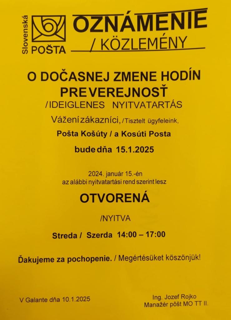 15.01.2025 otvorená v čase od 14:00 - 17:00 hod.
